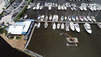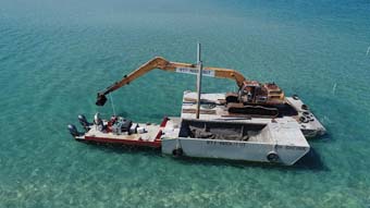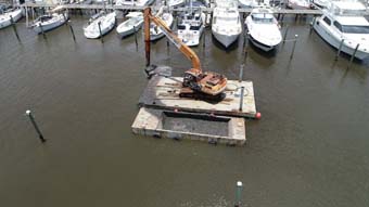 Mechanical Dredging is a time-tested, traditional dredging method. This process utilizes long reach excavators or cranes, which are placed upon barges that are capable of holding and transporting material to shoreline locations. Once transported to shoreline locations, material is offloaded into trucks and removed for final disposition. This method is best suited for projects where dredged material has a high moisture content. It’s also ideal for projects in highly developed locations. Doctor Dredge can rapidly expedite the permitting process for Mechanical Dredging projects in most cases.