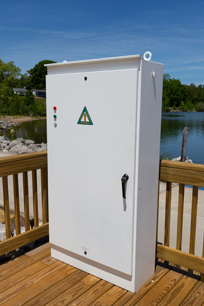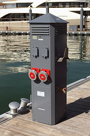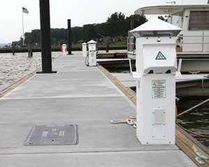 Digital electronic meters can identify an individual boat that has dangerous AC or DC current leakage to the water or ground. Can turn the power off to the boat having the ground fault. Can include a built-in wireless transmitter that will report to the marina office the power consumption, a boat ground fault and water consumption.