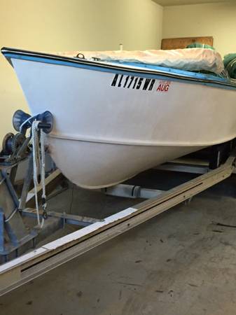 Nice wooden 17′ Negus built in 1972 with very nice later model aluminum trailer. High quality wood boat that is still very tight and is in above average condition to be 44 years old. This was one of the top of the line speckle trout boats around this area for many years. Built kind of like a Stauterbuilt Cedar Point Special but with deeper v and higher sides. Boat needs no major work just a little tlc, some paint and a new 4 stroke. Boat comes with steering, bimini top with clear side curtains, built in large live well, full boat cover and aluminum trailer. No Motor. Call or text number .$2000 obo