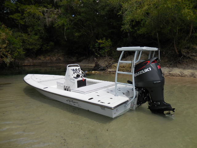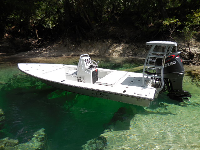 Outstanding flats boat built with back country anglers in mind – 100% hand laid composite construction. Rigged with the new Suzuki 115 SS featuring more low end torque for better “out of the hole performance and a higher RPM range for faster top-end speeds.
