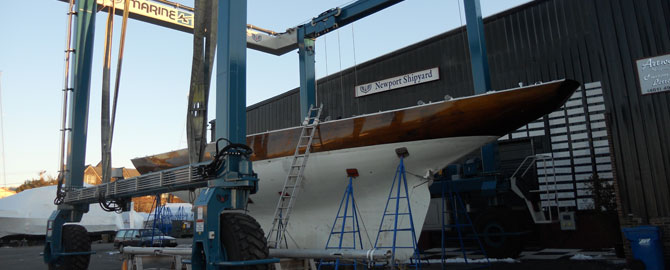 Newport Shipyard has three Travelifts onsite (70T, 100T, 500MT). Operated by a team of experienced marine hoisiting engineers, Newport Shipyard is the only Marina/Shipyard in the heart of downtown Newport with large boat hauling capabilites.