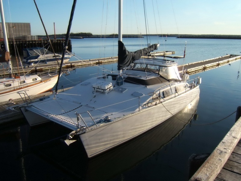 Hull number 69. Professionally and consistently maintained, solidly built PDQ catamaran is very well equipped for extended live-aboard and open ocean cruising. Beautiful interior, teak cabin sole, nine ports, eight polished aluminum hatches, wine table and storage under dinette table, aft pantry cabin, under sole dry storage. She is the LRC (long range cruiser) version with twin Yanmar diesel engines (GMF20)built for open ocean as well as comfortable coastal cruising. Fully self sufficient with solar and wind power. With a very impressive inventory of cruising features œ both for safety and comfort œ she is ready for further sailing adventures. Call 256-270-5557 or 251 554-0359.