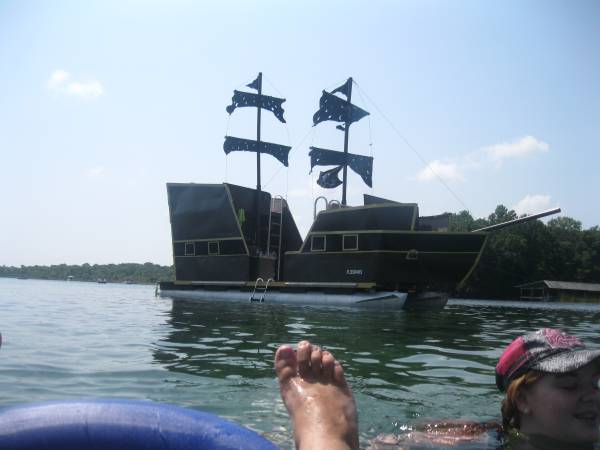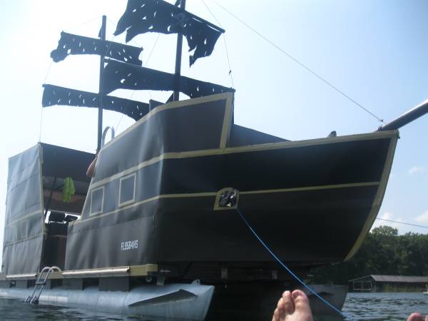 pontoon pirate ship.new mercury optimax 90. dealer installed less than 10 hrs. only non ethanol gas. new controls,gas tank hoses. lowrance elite 7 gps/ff/downscan sonar. vhf radio. cd stereo. rv camera. 2 navy style anchors w/ chains on 2 electric winches w/ remote controls. new furniture. 1 bench cooler, 1 tabletop cooler. collapsible sails. 2 upper decks. 2 batteries. all aluminum construction. sell for 20,000 cash or trade for twin outboards , full size zodiac, cat cc , military style hummer or newer bmw or mercedes.