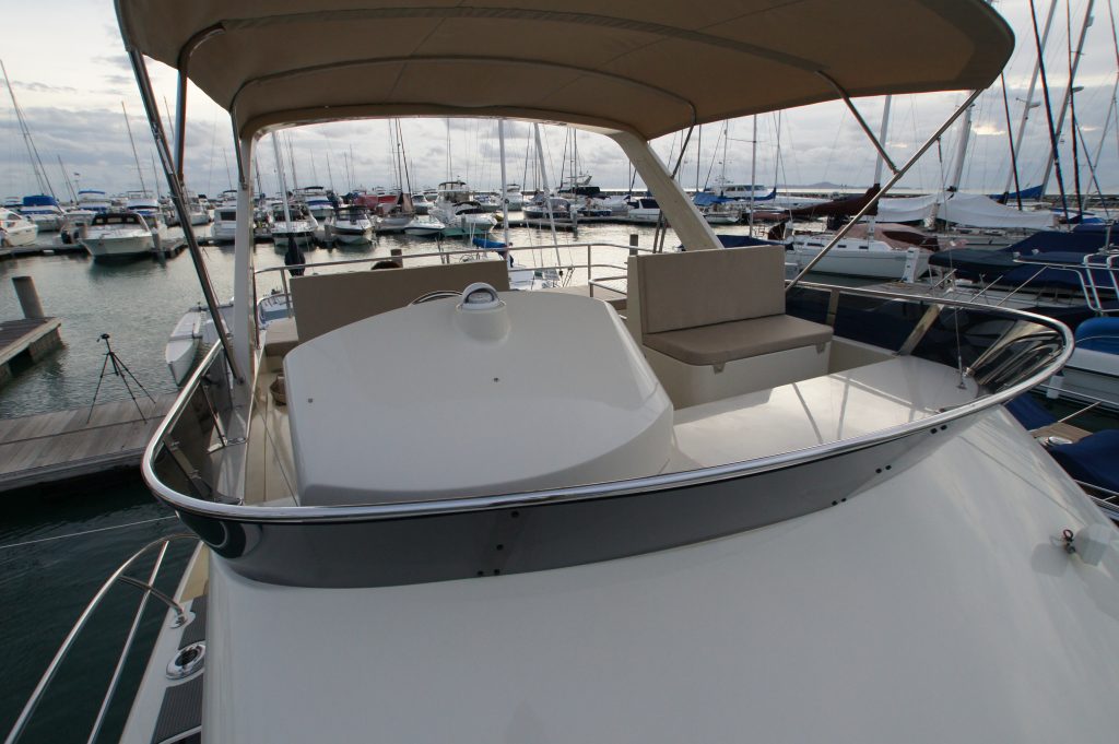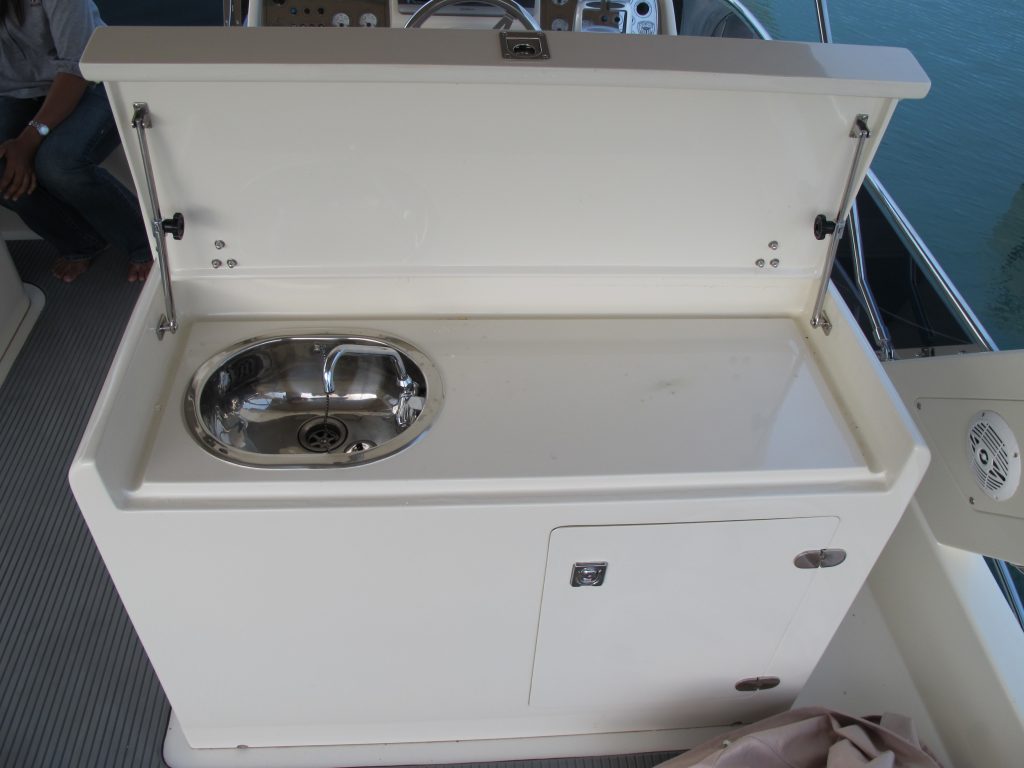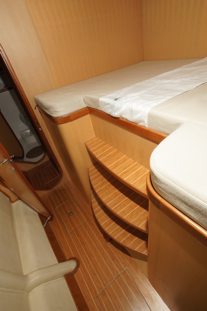 Major Specifications – LOA = 32′- 2″, Beam = 16′ – 3″, Height = 12′ – 0″ (top down), Height = 15′ – 1″ (+/-), Weight = 11,685 lbs, Capacity = 3,880 lbs, Power = Twin 75-250 hp, Fuel = 2 @ 80 gal each, Water = 2 @ 40 gal each, Large Head/Shower, Optional Hard Top