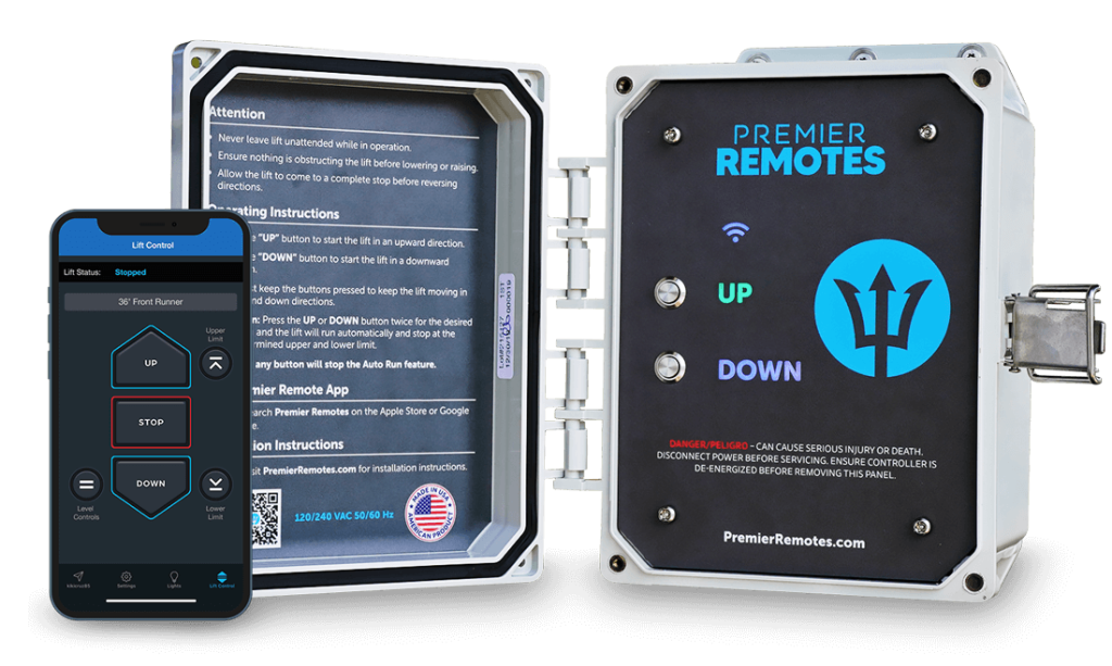 Premier Remotes is the world’s first boat lift controller that allows you to operate your boat lift from anywhere in the world. Take full control of your lift with the Premier Remotes app which turns any smartphone into an advanced boat lift control