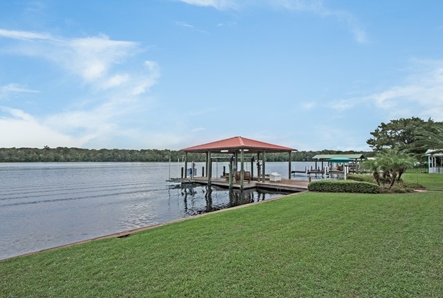 **Pristine Fishing & Boating** community located on a private peninsula of the St Johns river! 3 bedrooms, 3-1/2 bathrooms, 3.5 car garage, 6-inch baseboards, king crown molding & Brazilian granite throughout, solid interior doors w/raised panels, custom closet systems throughout, rocker switches/dimmers, hardwood cabinets, 12×18 brick pattern tile in living areas. California-style Master Suite offers bath w/walk-in shower, top of the line Pearlmax Whirlpool tub & raised vanities