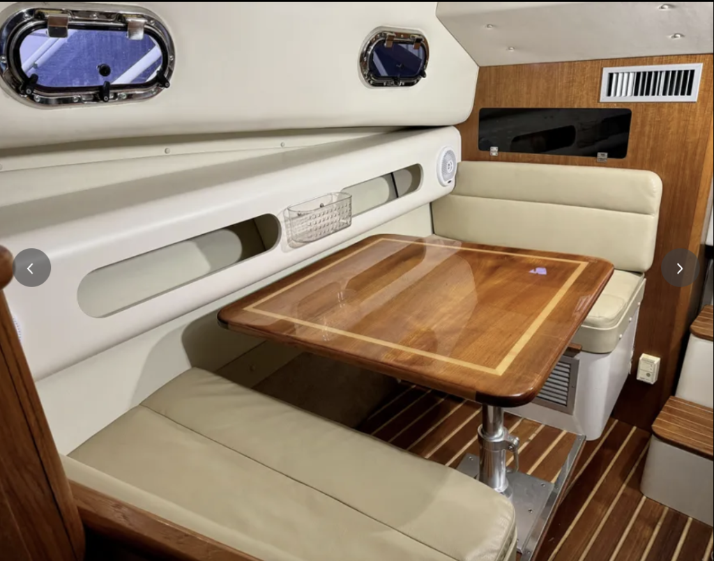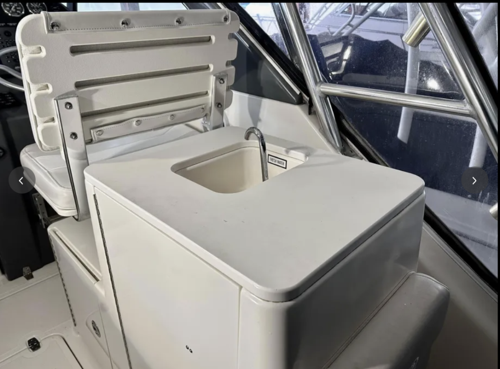 2004 Pursuit 3100 Offshore. Immaculate condition throughout! In-water and ready to go today. Powered by twin Crusader 6.0L’s 375HP with only 570 hours! Full electronics. Garmin Radar/Chartplotter/Sounder ICOM M-502 VHF Radio Simrad AP26 Auto Pilot 4″ Compass Accommodations: Sleeps 4. Double berth forward, Convertible dinette to starboard. Teak & holly flooring throughout, Three opening portholes. Galley to port with 12V/110V refrigerator, Single burner stovetop, GE Microwave. Electrical System: 12V & 110V systems, 2-30A shore power inlets, battery charger. Deck & Hull: Fiberglass hardtop with 4 sided enclosure, overhead electronics box, swim platform with transom door, 6 rod holders, 8 rocket launchers, fresh & salt water washdowns, cockpit fish box, outriggers, cockpit padding, hideaway cockpit seat. Mechanical: Reverse cycle heat/air conditioning (1 zone), fresh water cooling, trim tabs, halon, hydraulic steering, fuel filters, raw water strainers. This is a quality vessel by Pursuit. Check it out!