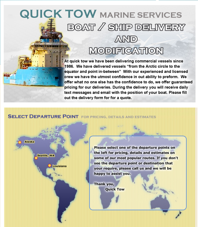 Quick Tow employs licensed captains and crews, we use both foreign and domestic crew members to suite your