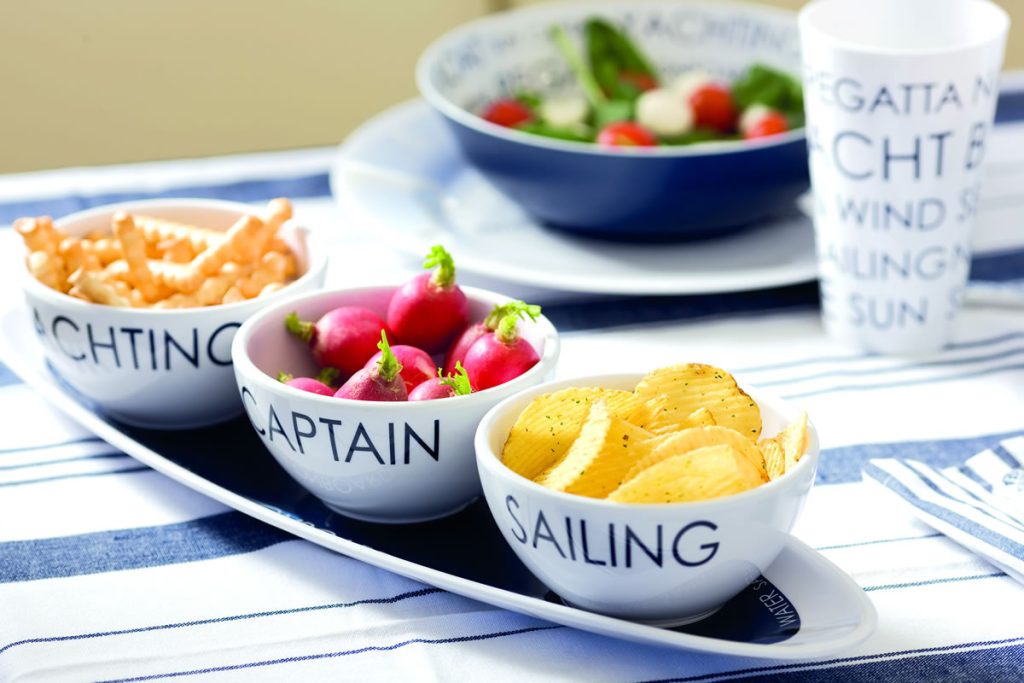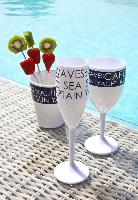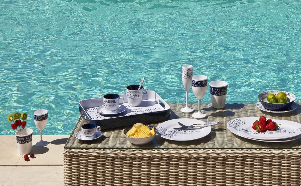 The 25 piece SEA pack is a practical set in melamine for 6 people. It includes 6 dinner plates, 6 soup bowls, 6 dessert dishes, 6 stackable mugs & basket. All the pieces are made of unbreakable, two-tone melamine (blue interior) and come in the navy blue PVC multi-use basket that can be used to store tableware or as a fruit container or for boating accessories. All the pieces can also be purchased separately Imported from Spain