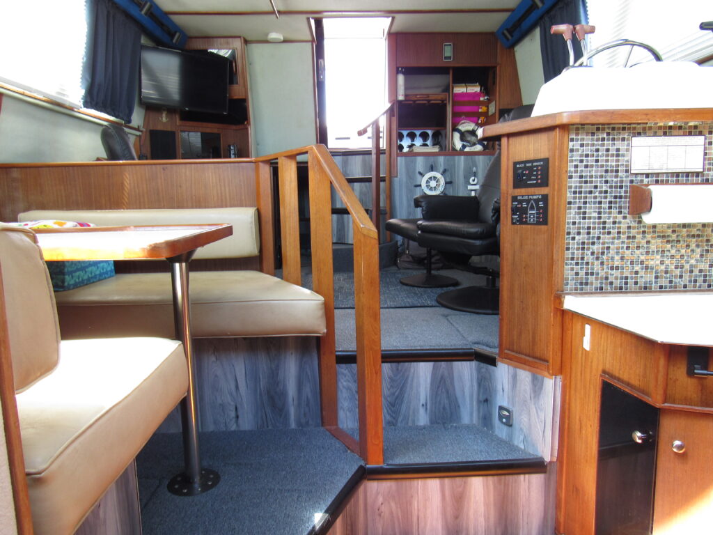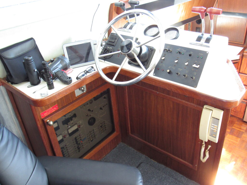 The popular motor yacht started production in 1986. “Pipe Dream” is a 1988 model with a bow pulpit added. Davit w/9′ inflatable, T/375 HP cat diesels (3208 TA) hrs. 2761, 8Kw genset, wing doors, garmin echo map, uniden VHF, Fruno Radar, windlass, bow pulpit, lower helm, icemaker, flatscreen, interior carpet newer, princess stove, magic chef refrigerator (NEW). Vessel is seriously for sale due to illness of seller.