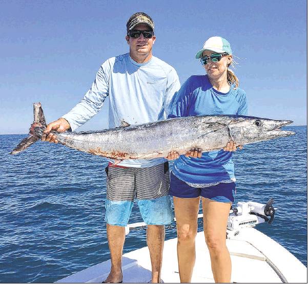 *Captain Rob Bennett with Amber Patterson and a wahoo she caught this week in 60 feet of water east of the Matanzas Inlet. The fish hit a slow-trolled pogy.*
