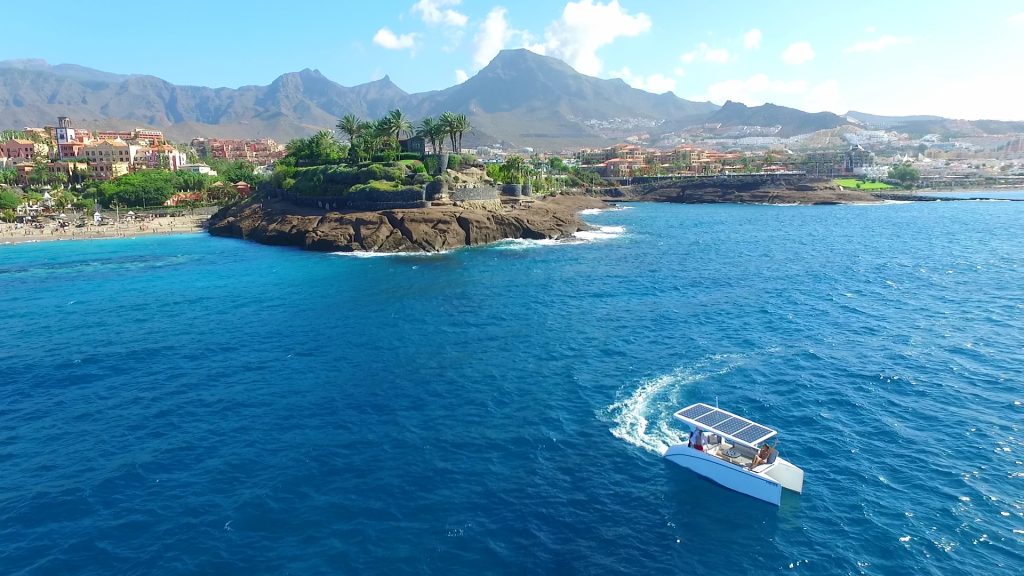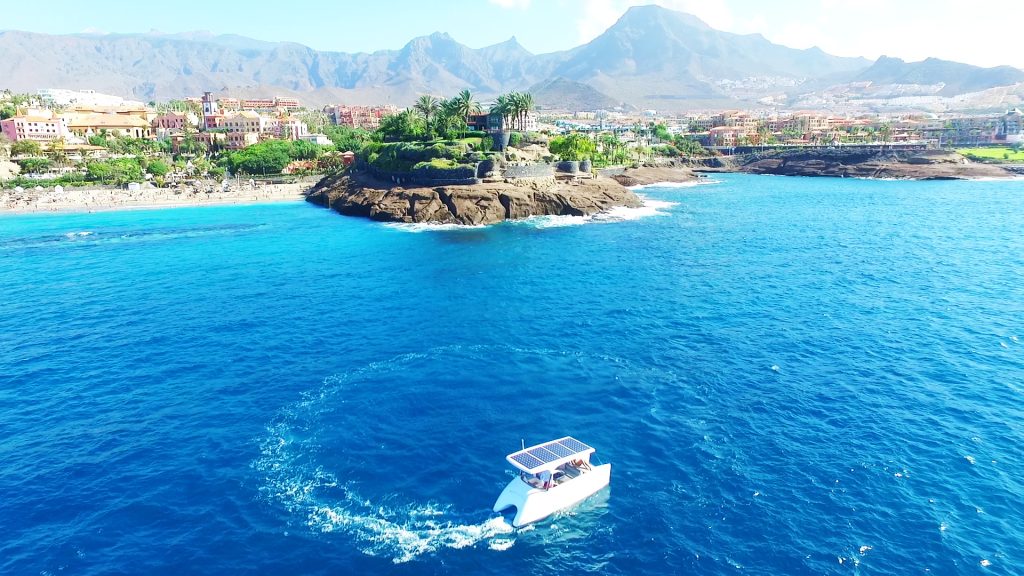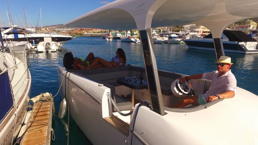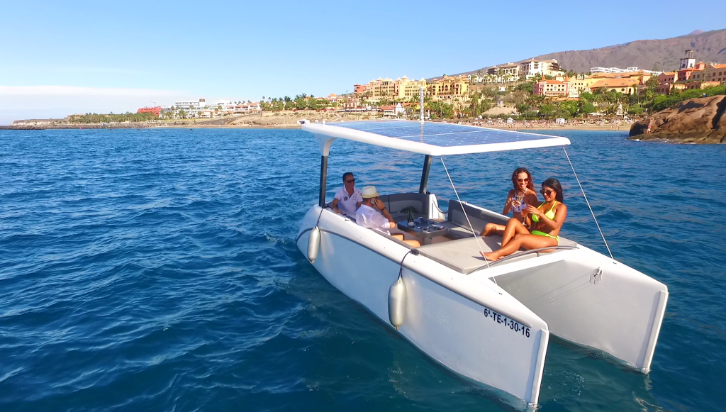 The boat has an electric drive, and the charging current draws from the solar panels. At night from gel batteries.