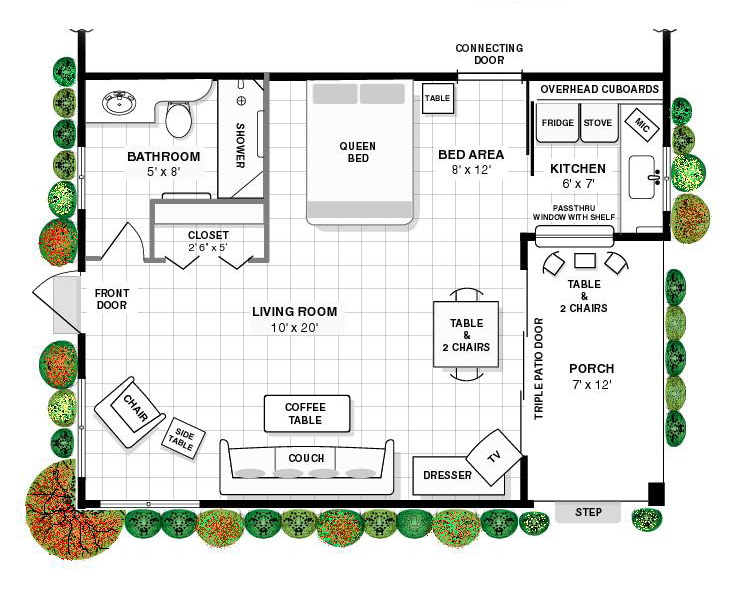 All 6 villas have ceiling fans, air conditioning, tile floors and a private covered patio. Each room is furnished with a queen bed,