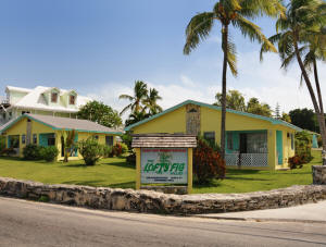 The Lofty Fig is an intimate, impeccably clean family run resort consisting of 3 single story structures surrounding a small freshwater swimming pool. Each building, brightly painted in island yellow with aqua trim, contains 2 villas.