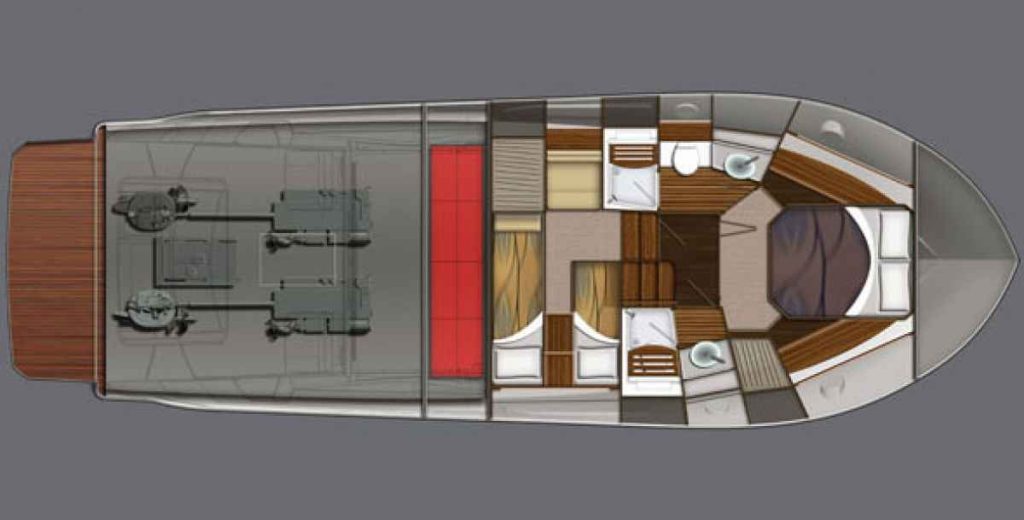 Available Power: Twin 435-hp Volvo Penta IPS 600 diesels.