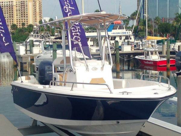 This boat is on order now with great options: Stars and Stripes blue hull, 150 HP Yamaha 4 Stroke, Console Cover, T Top with fore and aft Spreader lights and rod holders, and much more.