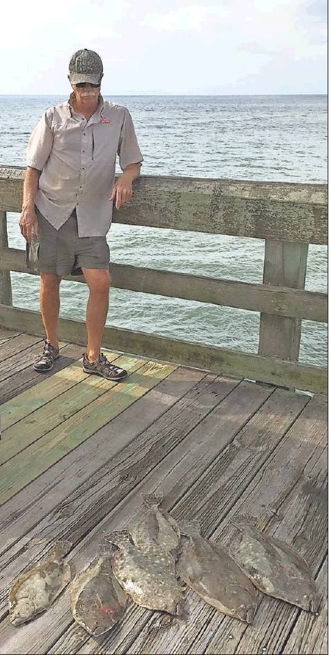**CONTRIBUTED PHOTO:** BY THE ST. JOHNS COUNTY PIER Ron Joiner with six really nice flounder caught at the St. Johns County Pier on May 19. Joiner caught another four Wednesday morning.