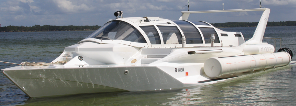 The FBS integrates a range of proven systems and practical features. This long-range, twin-engine speedboat is also, by default, a highly mobile diesel-electric (dry cabin) submarine. As such, this dual use hybrid provides instant and sustainable subsea access when you need it (to a depth of 500ft.) simply by launching it from your dock, beach, or estuary.