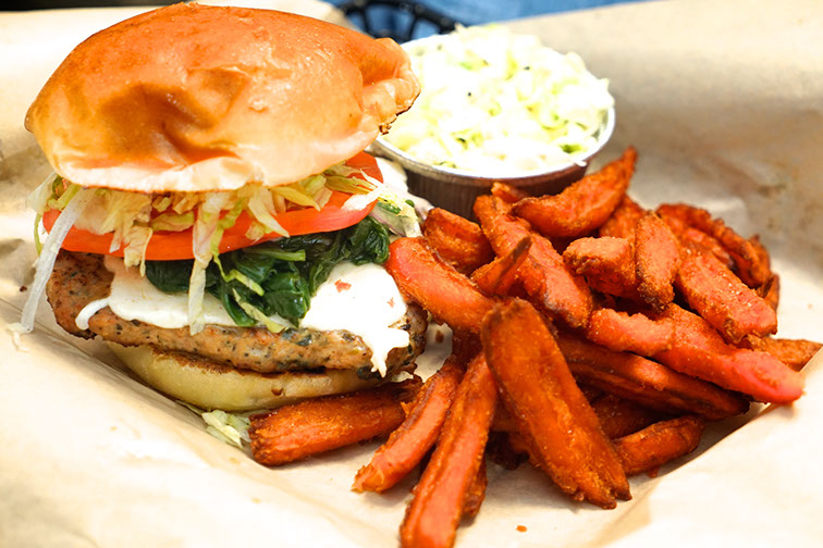 **All Burgers** come with natural cut fries or coleslaw. We offer a 1/3 or 1/2 pound burger and cook them medium to